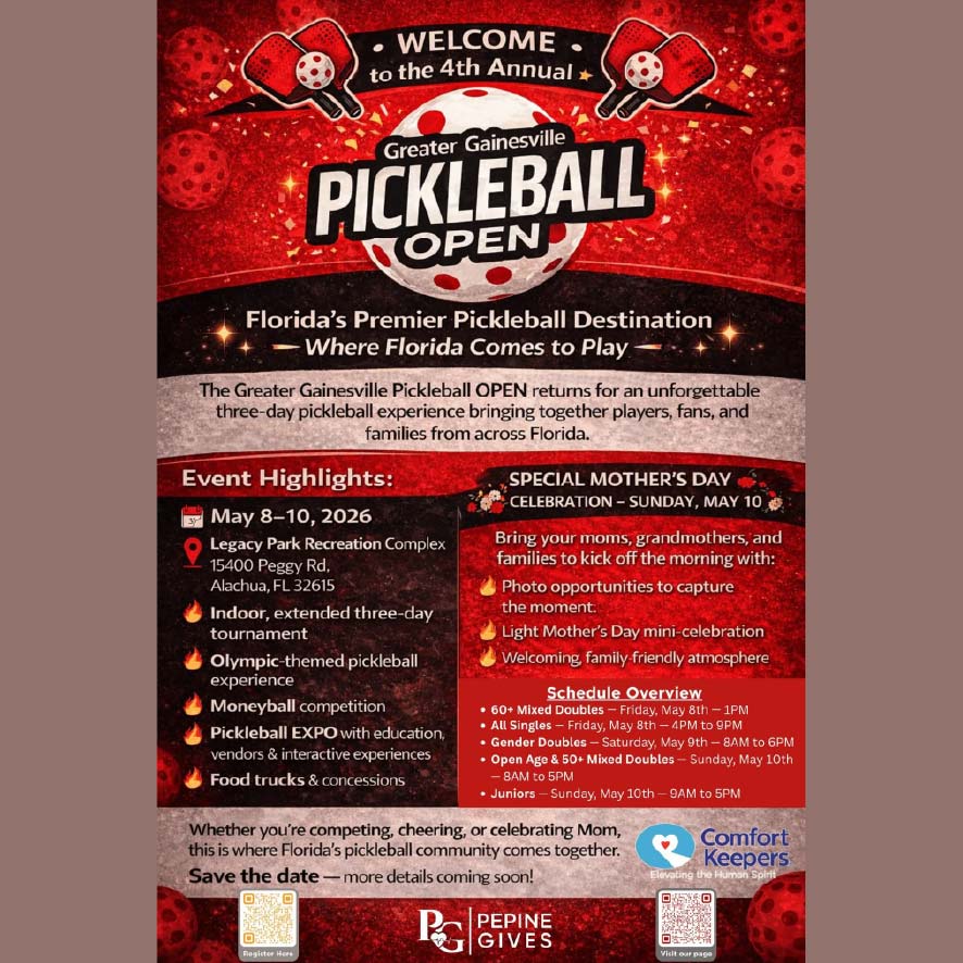 ➡️ "Greater Gainesville Pickleball Open 2026" Pickleball tournament in Alachua, FL May 8-10, 2026 https://floridapickleballtournaments.com/event/greater-gainesville-pickleball-open-2026/