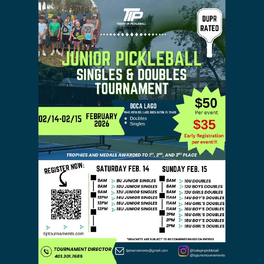 ➡️ “Junior Pickleball Singles and Doubles Tournament”