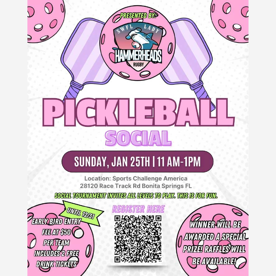 ➡️ "SWFL Lady Hammerheads Rugby Social Pickleball Tournament" Pickleball tournament in Bonita Springs, FL January 25, 2026 https://floridapickleballtournaments.com/event/swfl-lady-hammerheads-rugby-social-pickleball-tournament/